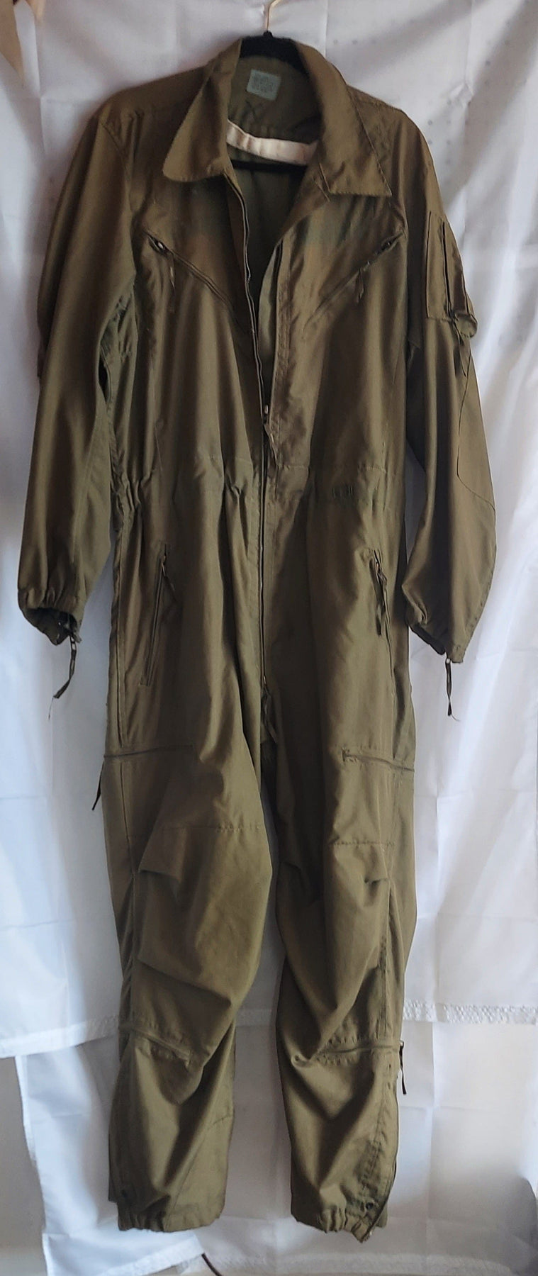Coveralls, Combat Vehicle Crewmen's Uniform are 100% Aramid material and in the vintage OD Green color made around 1979. These crewmen uniforms are considered used and still have lots of life in them. The crewmen's coveralls have two heavy zippered breast pockets and plenty of room to personalize it yourself, two inner and outer thigh pockets, and 2 lower pockets on either side of the body all pockets are heavy made zippers. A zippered cargo pocket on the left sleeve as well. Best part of the crewmen's uniform is the heavy zippered area to put on over your boots. Crewmen's Coverall uniform is great for changing tires, working on dirty jobs, welding, changing oil etc. Coveralls come in various sizes, please use Size chart for best fitment. Items are used and may have writing, holes etc.