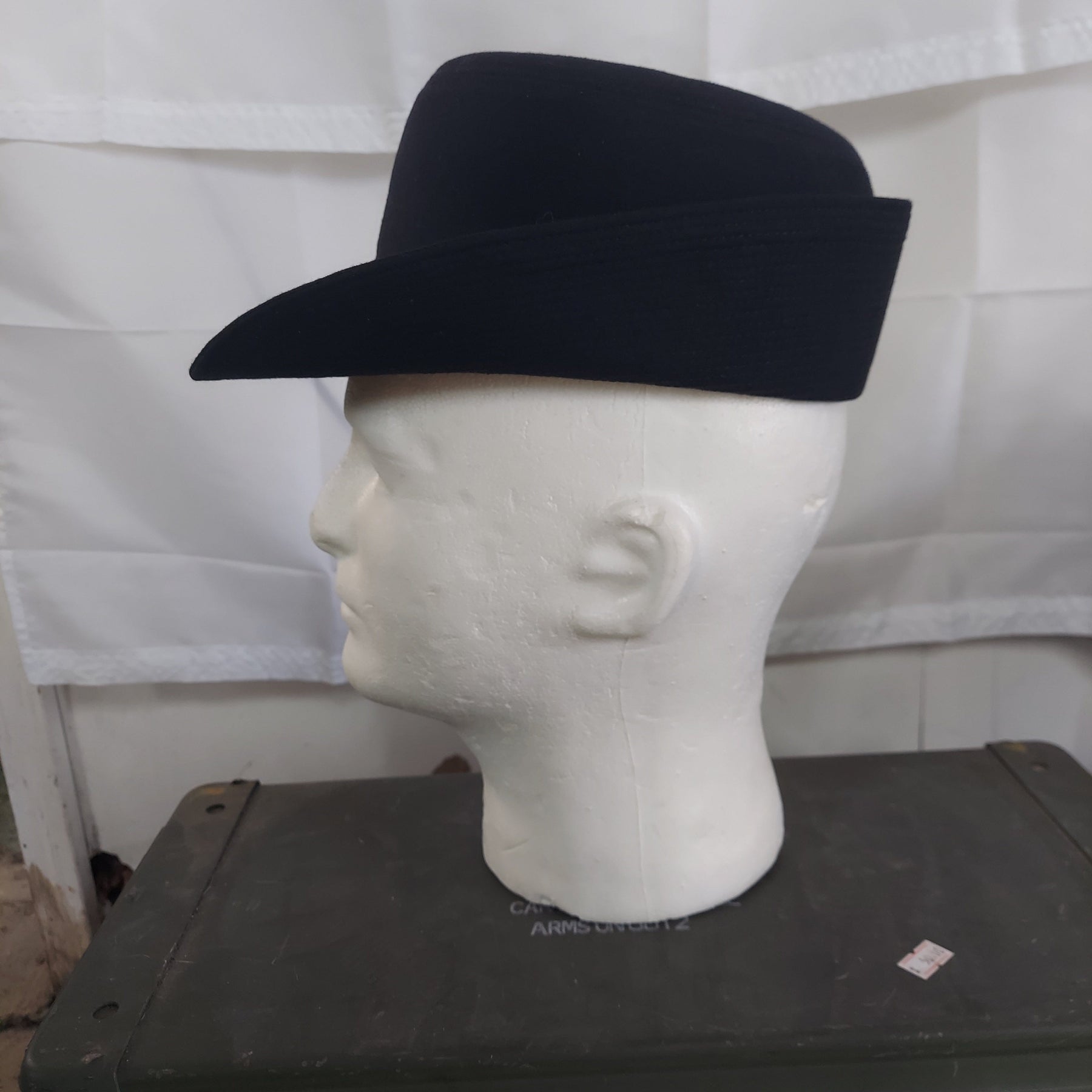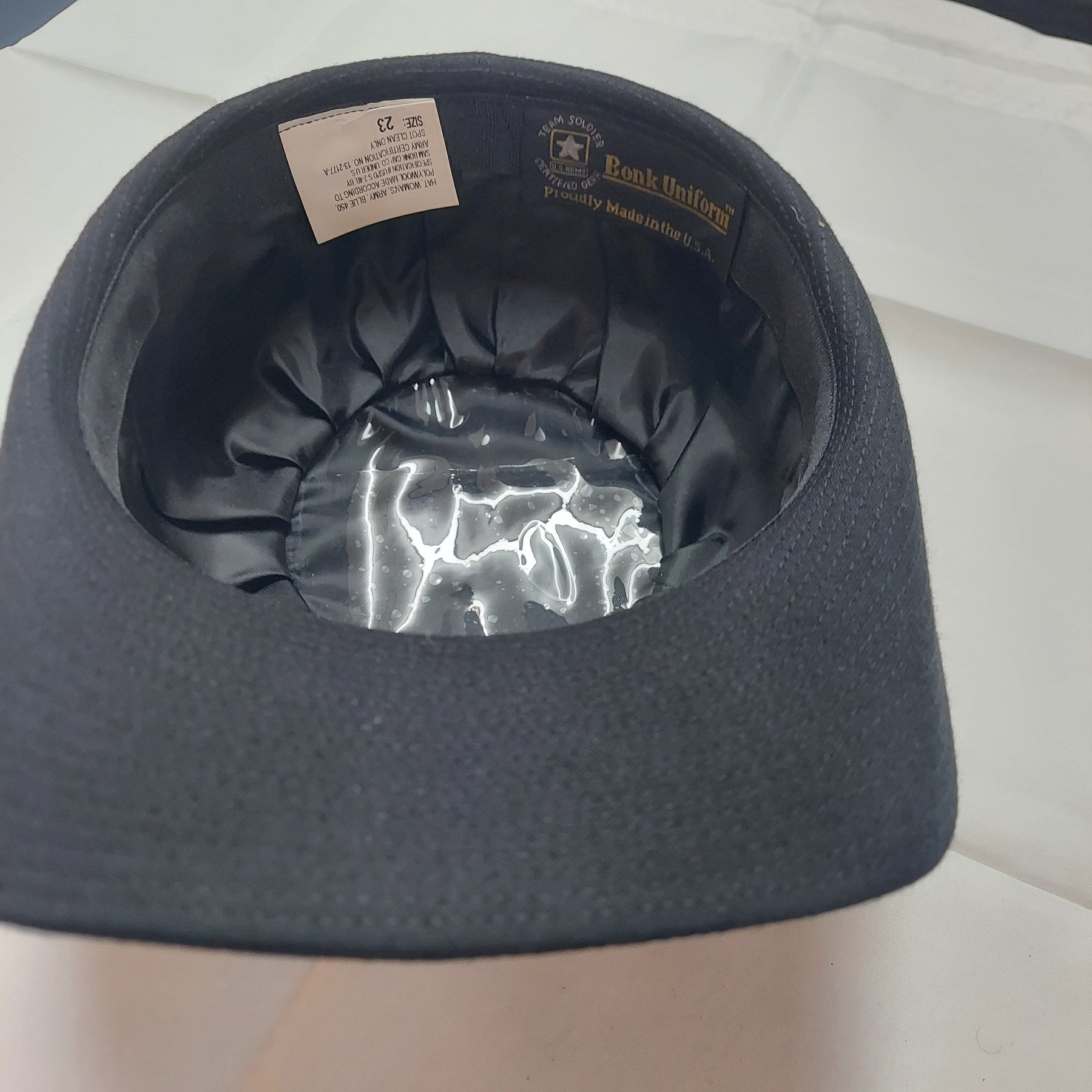 Hat, Women's Army Blue is without band or device. Hat Women's size being 23 has never been worn and still in the original box. Made with polyester and wool material. Does not come with device or band just plain. Made by Bonk Uniform Co. made in USA