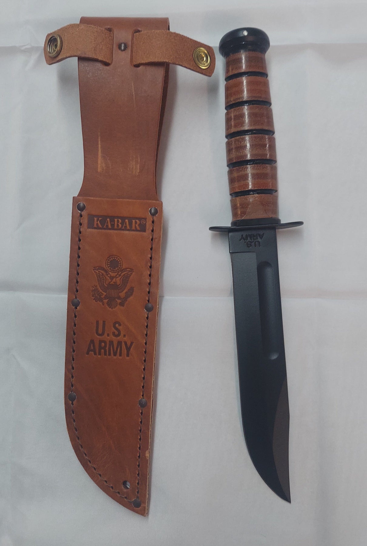 Midwest Distributing Knives US Army US Made Razor Edge Leather Stack Handled KaBar US Made Razor Edge Leather Stack Handled KaBar