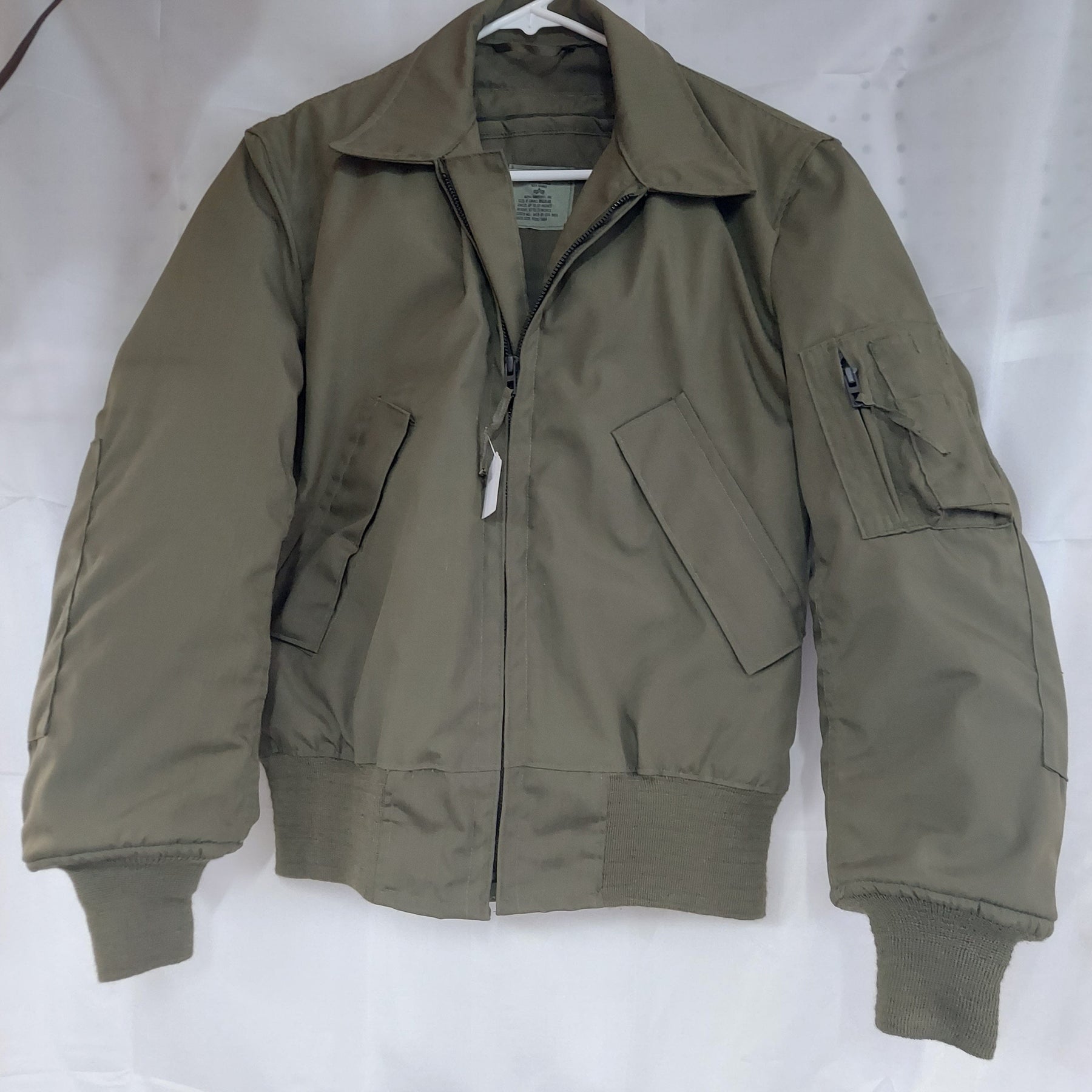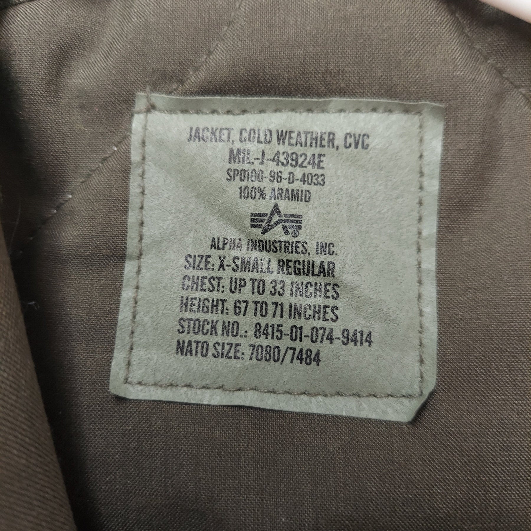 Jacket, Cold Weather CVC (Combat Vehicle Crew) is the iconic OD Green color and 100% Aramid made by Alpha Industries, Inc. Designed to warn during 14 to 68-degree temperatures. Front of jacket has two slash hand pockets on either side with hook and loop closure, zippered front, left sleeve has pen pocket and zippered pocket, reinforced elbows on both right and left sides. Like New!