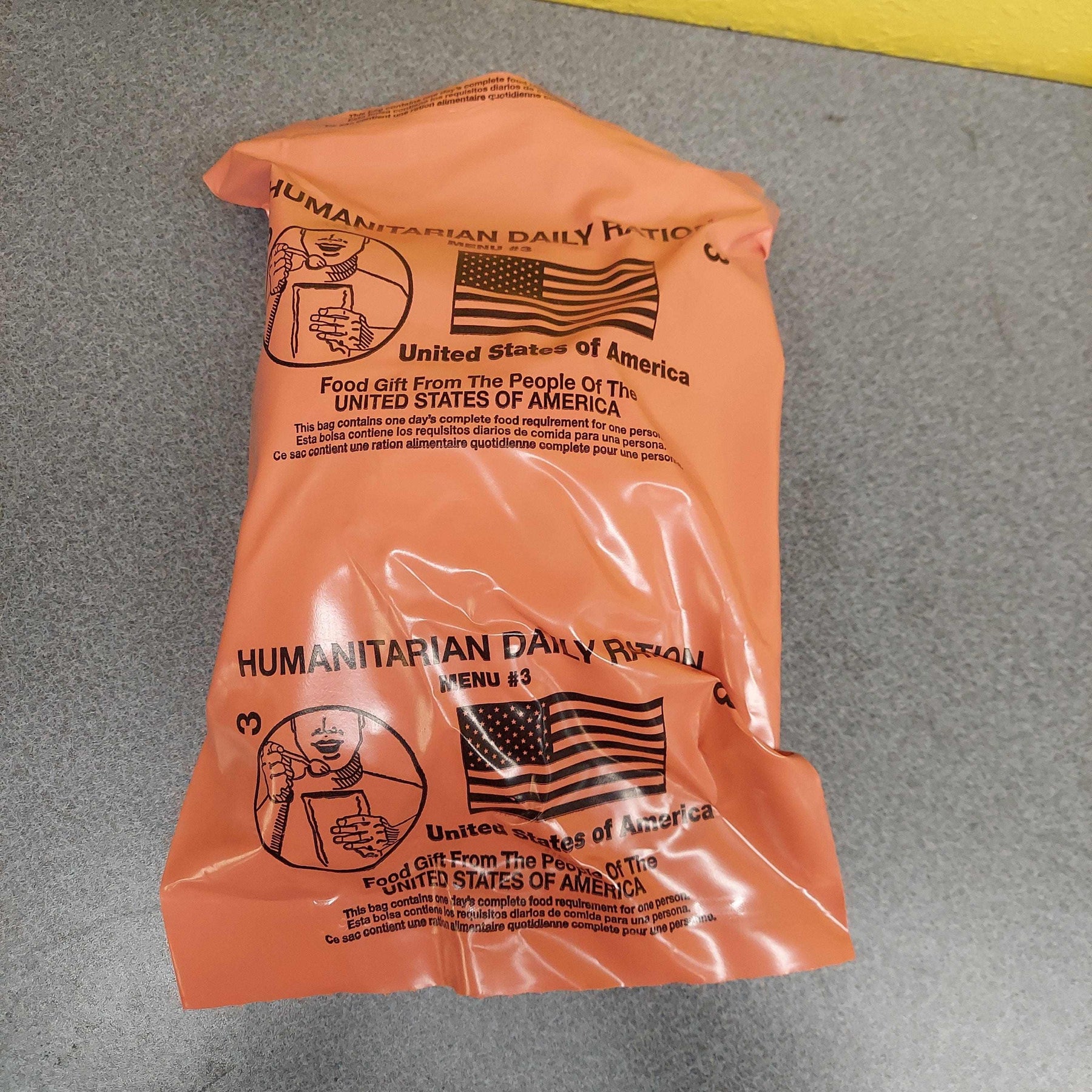 Humanitarian MRE's, Beans, rice and vegetable meals. Humanitarian MRE' Each Individual pack is a 24-hour ration ready to eat and will contain two entrees, snacks etc. No meat and no heaters but still have your good proteins. Humanitarian MRE' is meant to be eaten as is but yes you can heat them in different ways. Each case has two of each menu items from # 1 to 5.