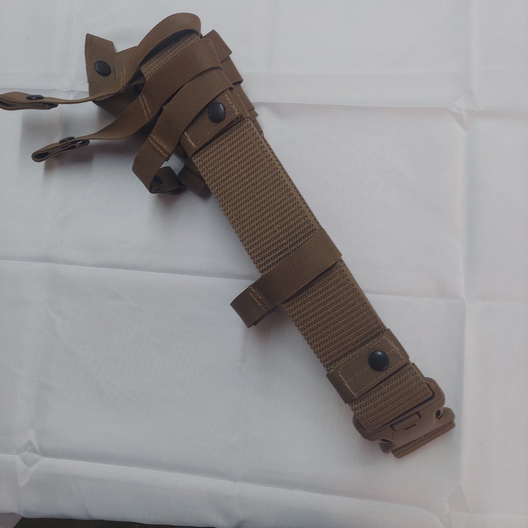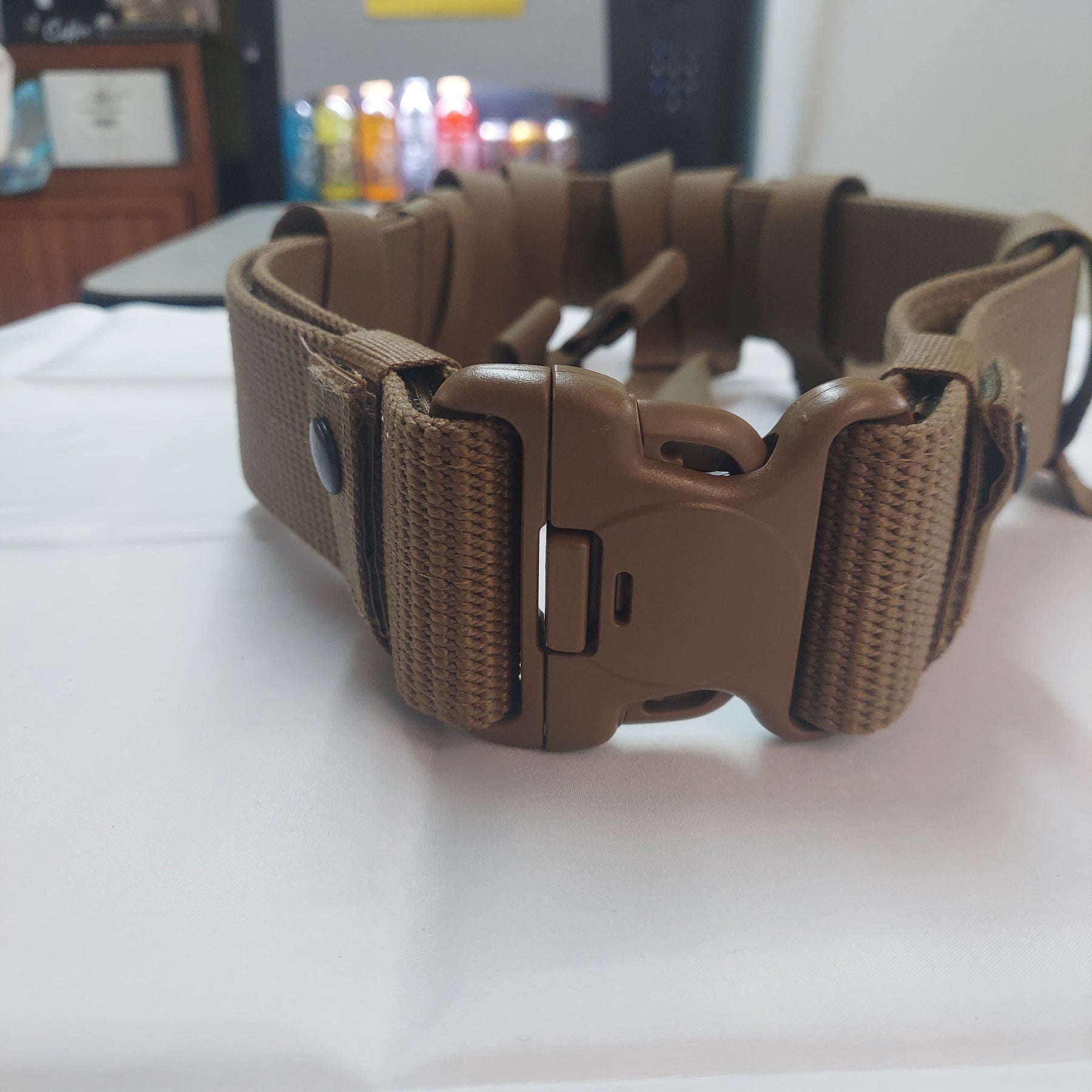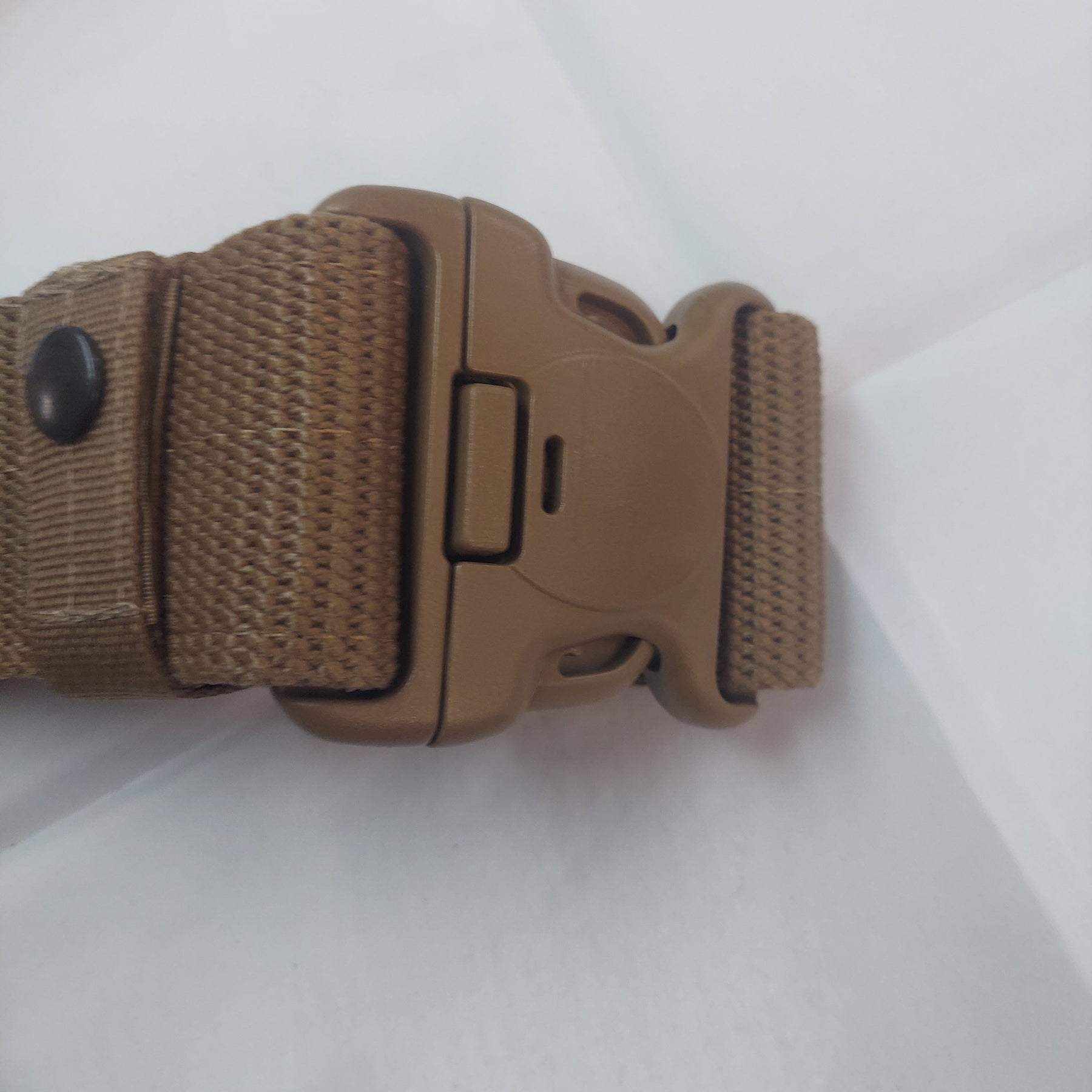 SPEC-OPS Tactical Belt with Adjustable Straps, and belt keepers in Coyote Brown. Belt is made with Nylon webbing with Velcro inside for personalized fit and adjustment. SPEC-OPS Tactical Belt fits up to 45" waist with width of 2.25". Personalize the belt with pouches, use of keepers or even attach to a plate carrier, 3-point locking system. The SPEC-OPS Tactical Belt is made in USA and Never been used.